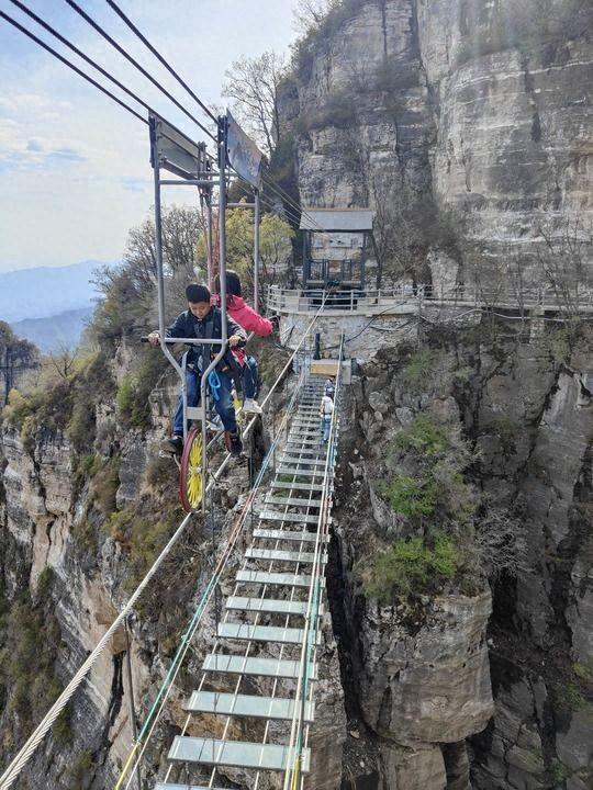 搭客在白石山景区体验空中自行车 王昆 摄