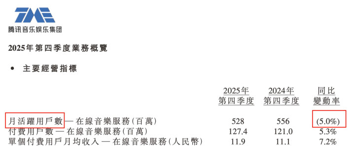 公告泄露,腾讯音乐2025年第四季度月活用户数为5.28亿,较2024年第四季度的5.56亿同比下降5%。有分析合计,pg电子在线音乐阛阓的浸透率依然面对天花板,月活用户的下滑是不争的事实。这背后是短视频平台,如抖音、快手等对其带来的冲击。