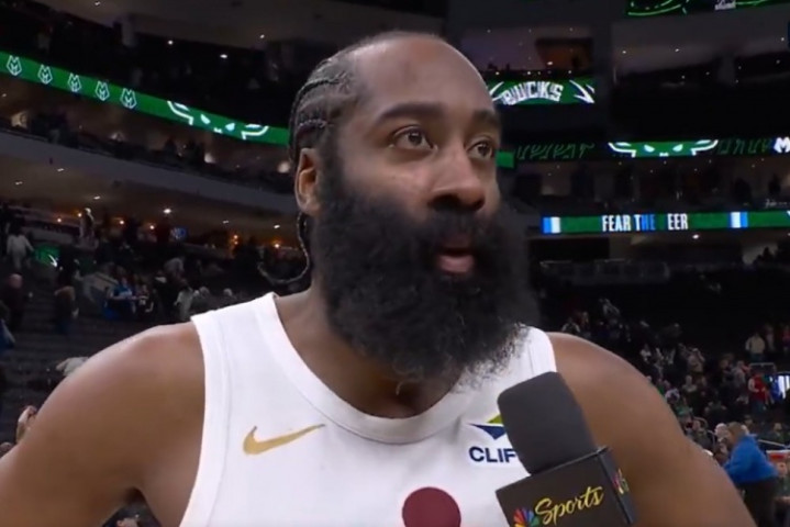直播吧3月18日讯NBA旧例赛,骑士123-116校服雄鹿。赛后哈登采纳了采访。