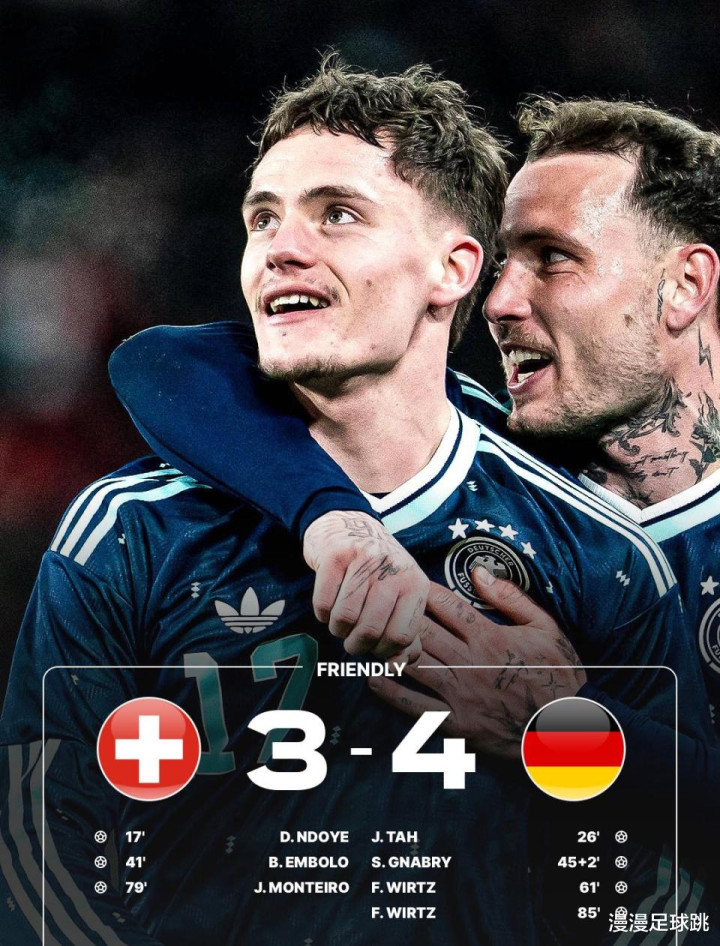 跟着寰宇杯脚步声越来越近,国度队们齐在进行热身赛备战,虽然德国队也在其中,他们与瑞士队为球迷献上了一场进球大战,最终德国队在90分钟内4-3绝杀敌手,维尔茨成为了本场比赛最亮的仔,一东谈主独造4球,况且在终末期间一记寰宇波“灭掉”瑞士,径直把利物浦球迷给看馋,你为安在安菲尔德就没这阐明呢?看来,斯洛特依旧莫得找到德国中枢的发挥书!