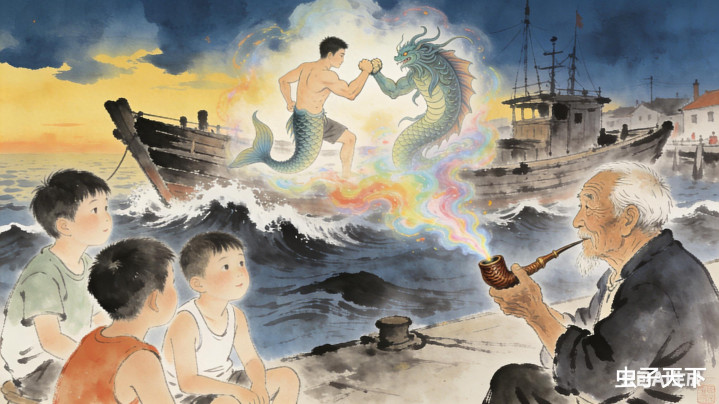 那本事的他,头发乌黑,光着膀子,肌肉绷得像铁疙瘩,正跟一个长着鱼尾巴的“海妖”掰手腕。