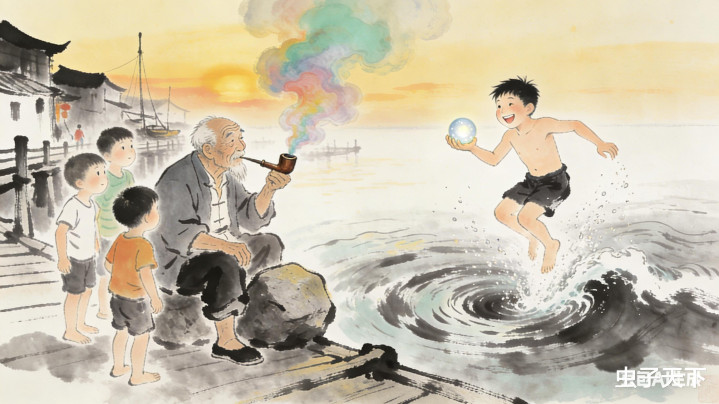 海爷眼一瞪,胡子翘得老高:“去去去,毛手毛脚的!这宝贝若是坏了,咱村早让浪头吞了!”